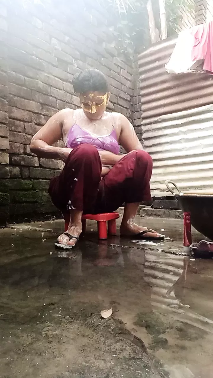Hot wife is bathing in the bathroom. Sexy girl is showering in the bathroom.
