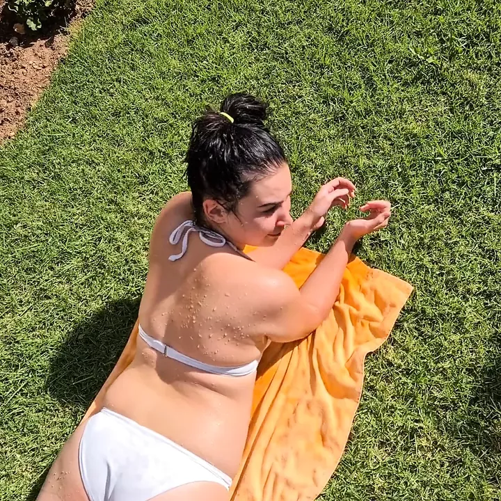 Pissing on my girlfriend lying in a bikini tanning