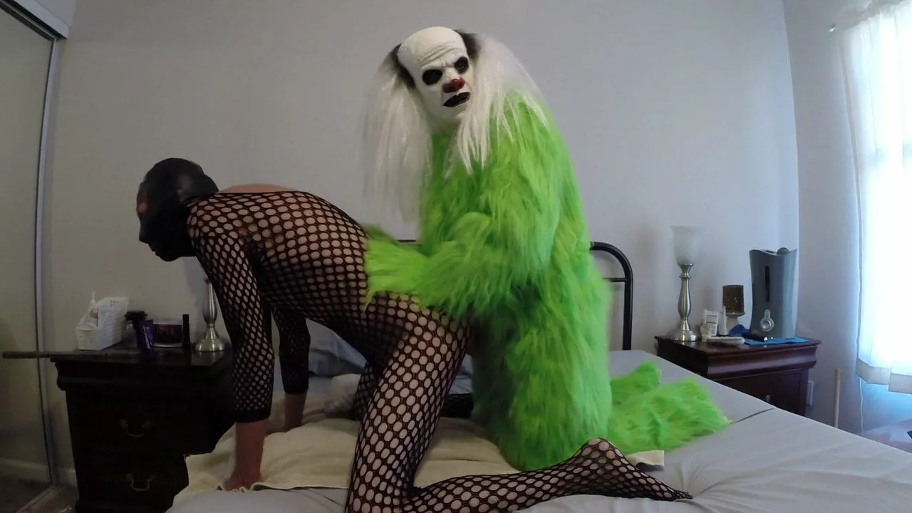 Me the green fur clown fucking his ass with a strap on...